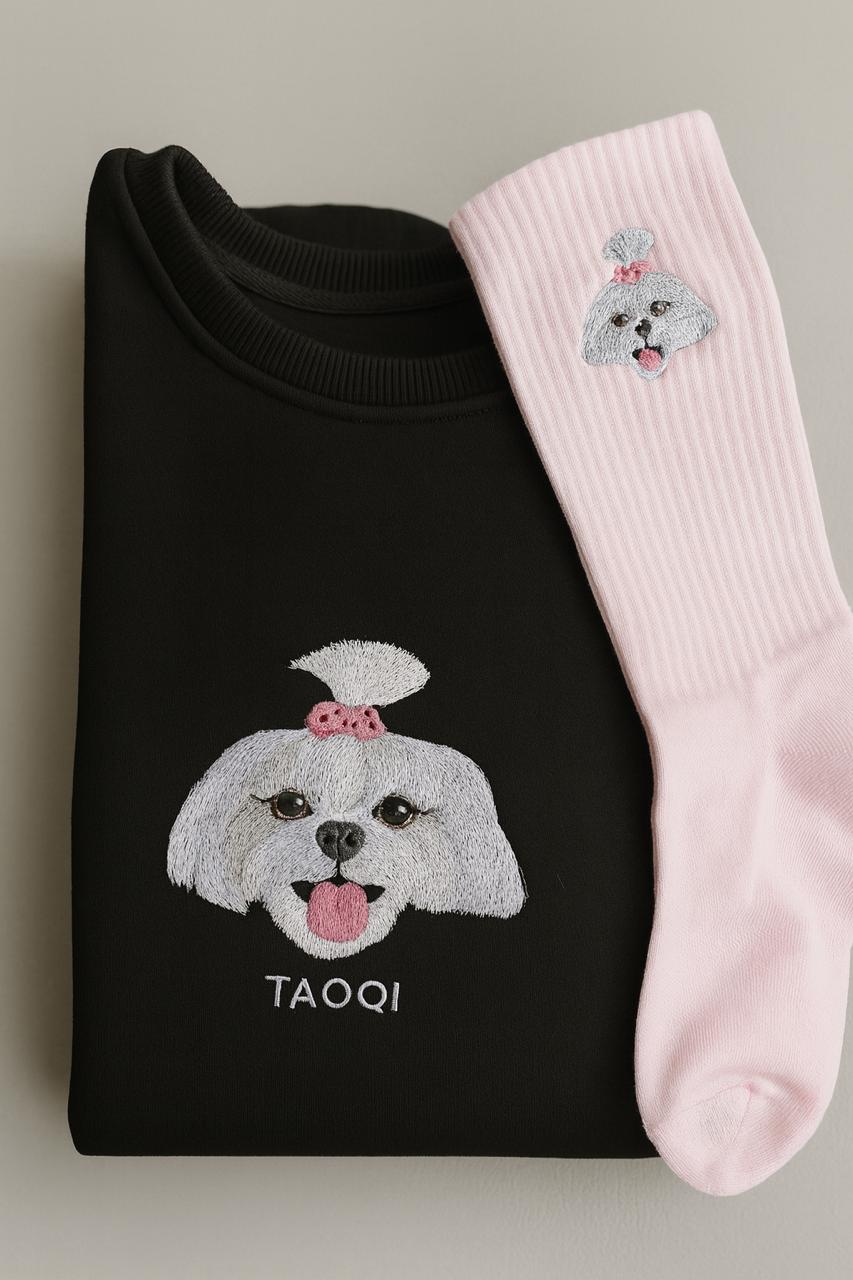 Llévate un par de medias y una polera con el retrato large personalizadas con el mismo diseño.
